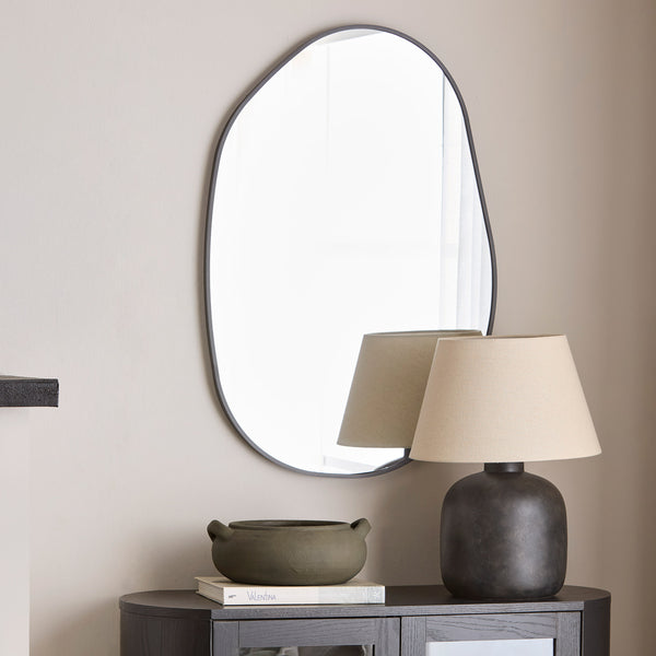 A signature mirror that brightens the entryway and showcases a décor that is both clean and inviting.