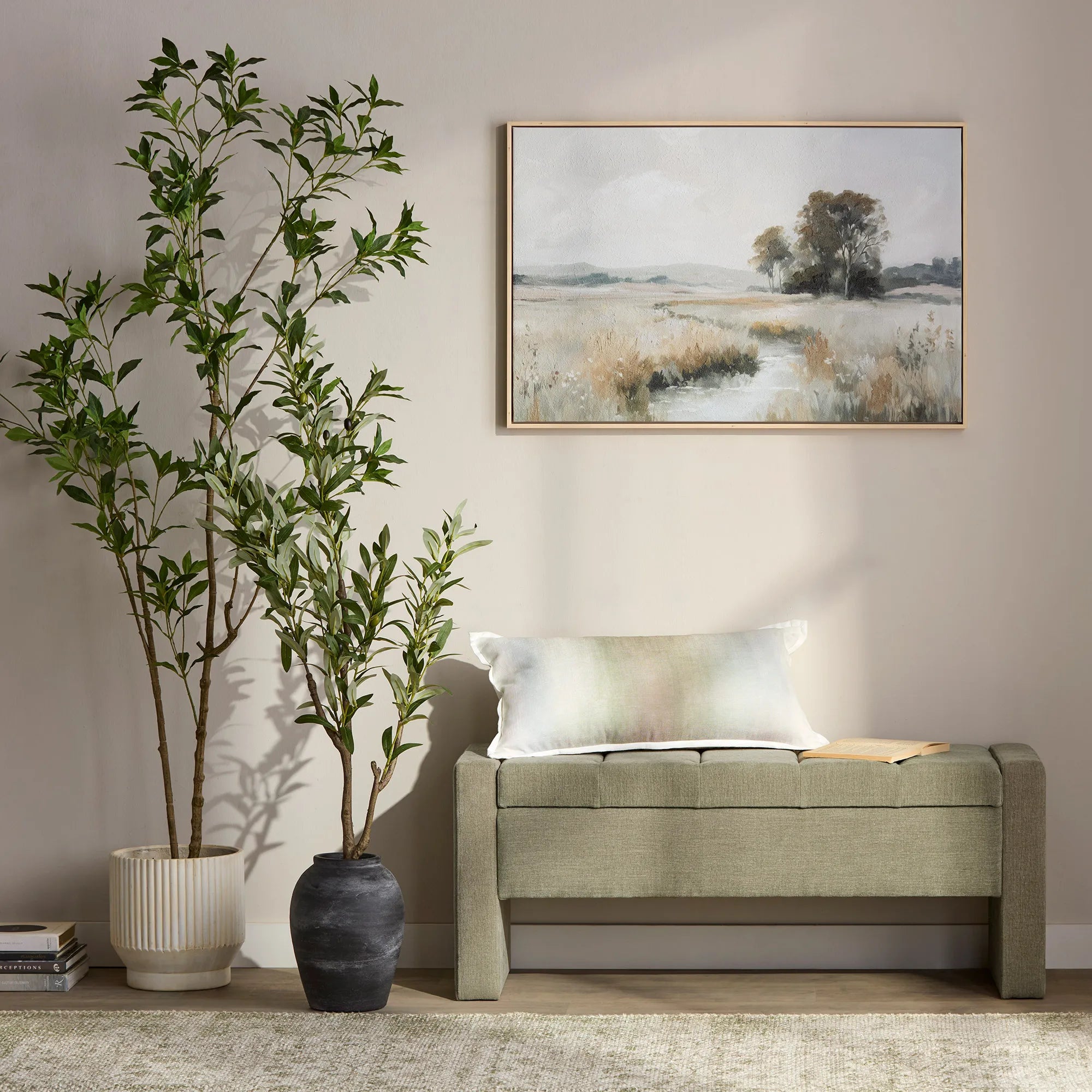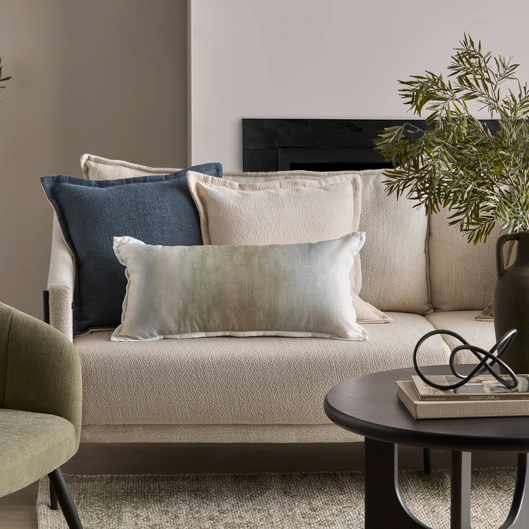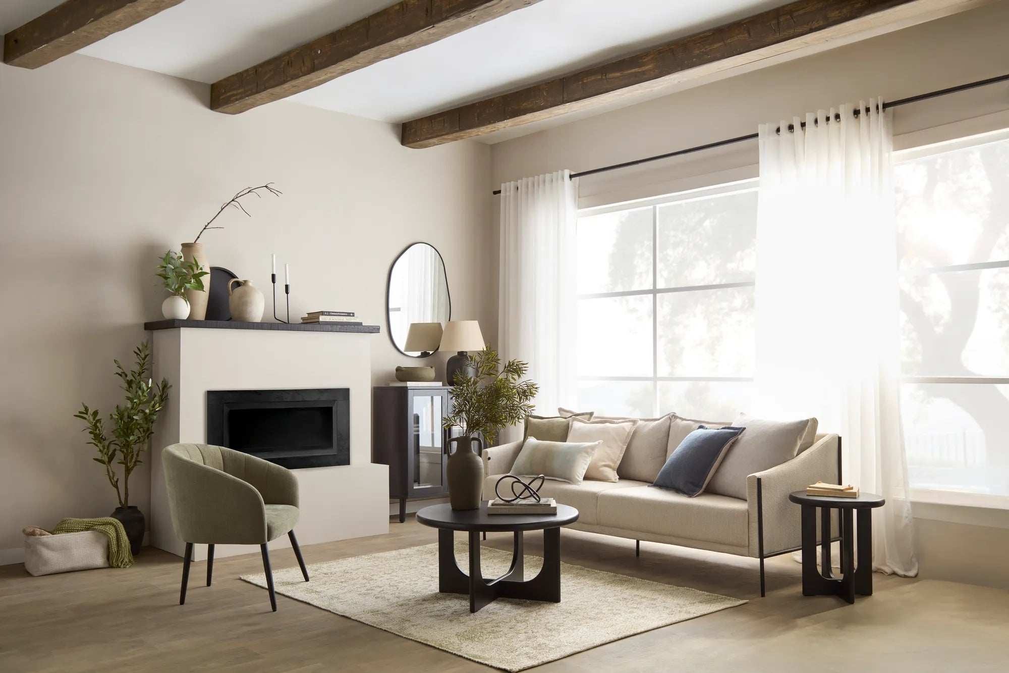 A harmonious mix of soft neutrals and deeper tones, inviting warmth, comfort, and effortless style.