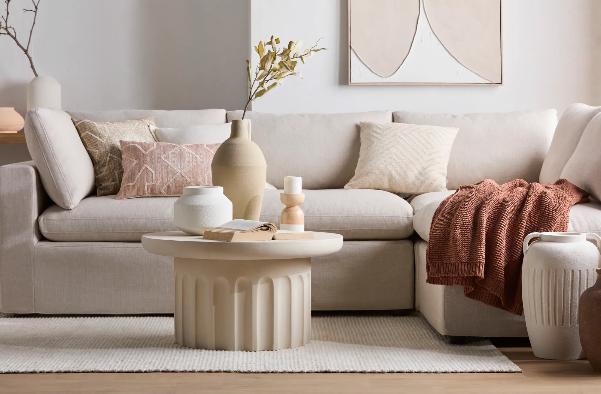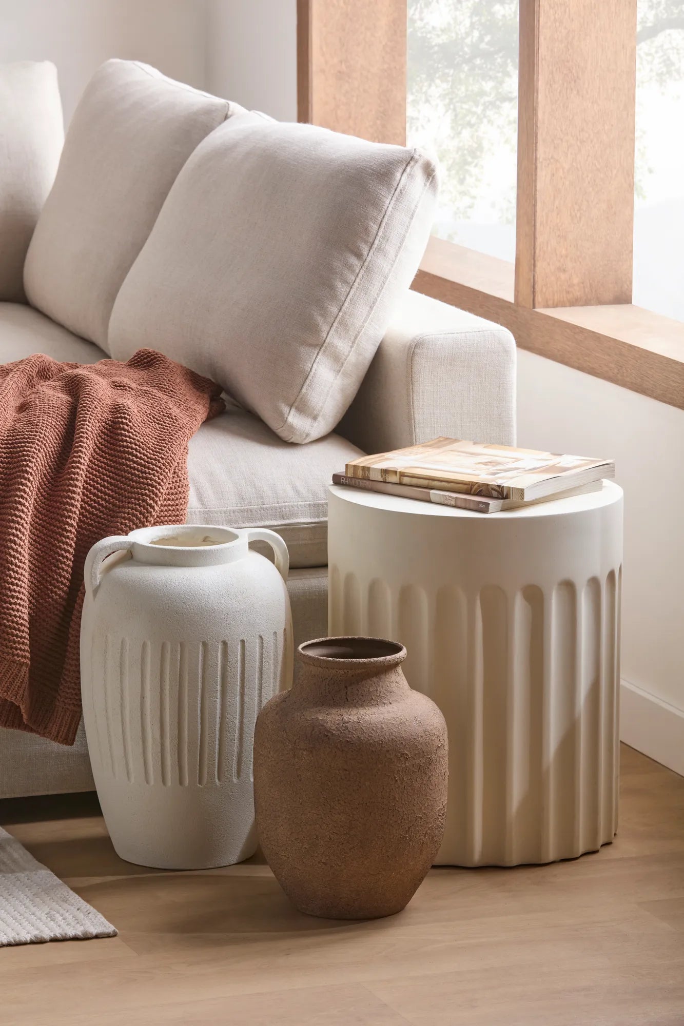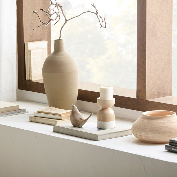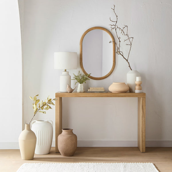 A grounded Nomadic entryway styled with natural textures and simple, welcoming accents.