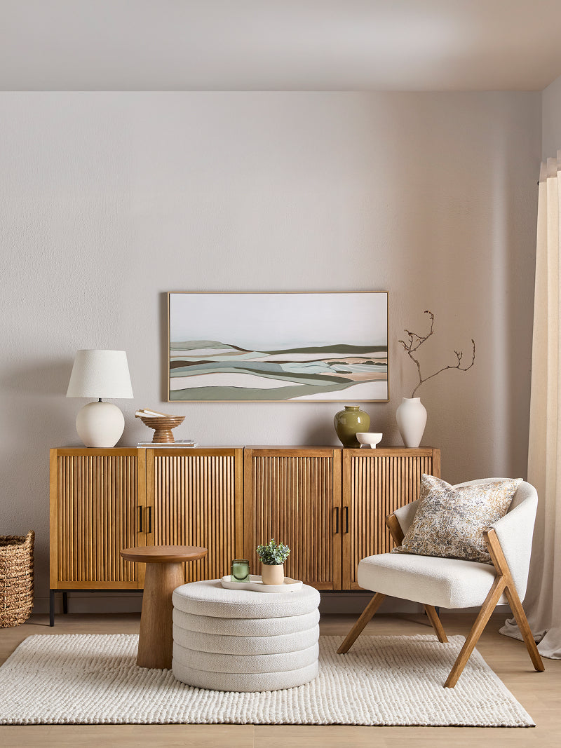 Cushions are an easy way to refresh your couch and structure the space around it. Stick to a clear colour palette, vary the textures, and combine solids with patterns for a balanced look. Play with proportions and group them in threes or fives. Whether placed close together or more freely, a thoughtful mix brings warmth and intention to your living room.